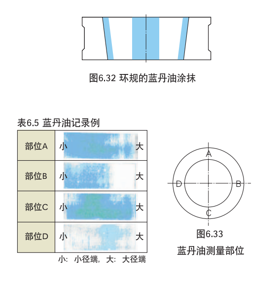 1、清洗環規的錐面后,在相對的4處薄薄地涂上藍丹油。