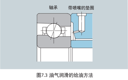 油氣潤(rùn)滑需要使用能夠利用壓縮空氣將已控制在適量 范圍內(nèi)的潤(rùn)滑油送入軸承內(nèi)部的專(zhuān)用噴嘴。建議使用噴嘴孔徑為1.0~1.5,長(zhǎng)度為孔徑的4~6倍的噴嘴。