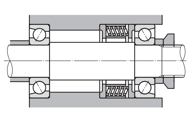 定壓預緊采用螺旋彈簧、碟形彈簧施加預緊力,在使用過程中即使軸承發生位置變化,預緊力也能基本保持不變,因此更適用于高速旋轉及會有軸向不定載荷發生的場景,如內圓磨床、電動機、高速軸、軋機、擠壓機、張力滾筒等。