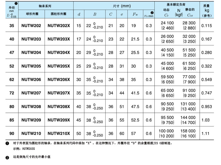 除了在一系列車(chē)型中引入的NUTR系列(如下圖2),外圈的寬度已經(jīng)加寬,中心肋配備了外圈,滾柱從動(dòng)件設(shè)計(jì)用于承載更大的軸向載荷。外圈的外表面為球形或圓柱形。帶有球面的外圈可有效緩解由于安裝誤差而產(chǎn)生的邊緣載荷。