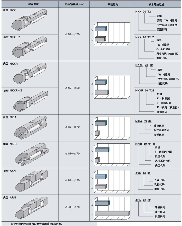 NTN復合軸承由一個支撐徑向載荷的滾針軸承和一個支撐軸向載荷的推力軸承組成,它們是整體組裝的。
