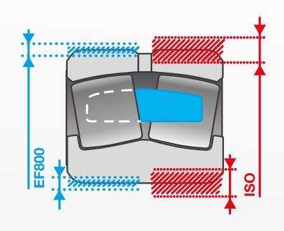 EF800系列有特定的外徑和內徑公差,與標準系列的公差范圍相比,外徑和圓柱/錐形孔的特定公差減小,從而確保環的完美配合,同時EF800系列的C4內部間隙減少至標準C4內部間隙的2/3,以便在運行期間獲得更好的運行性能。
