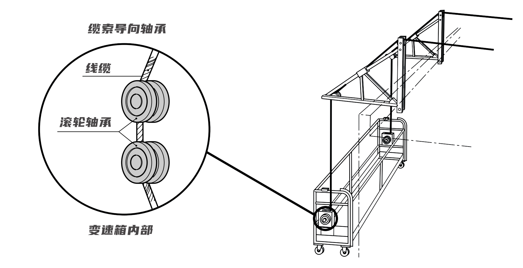溝槽可以通過車削和研磨精加工成鏡面,用于特定應(yīng)用,其基本設(shè)計(jì)與標(biāo)準(zhǔn)滾輪軸承(凸輪從動(dòng)件)相同,安裝很簡(jiǎn)單,這類軸承常用于鋼絲和鋼管用導(dǎo)輥、矯直輥、車窗清洗用吊索具等,如上圖所示。