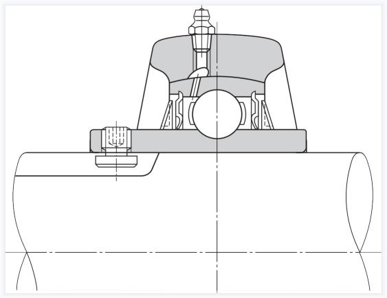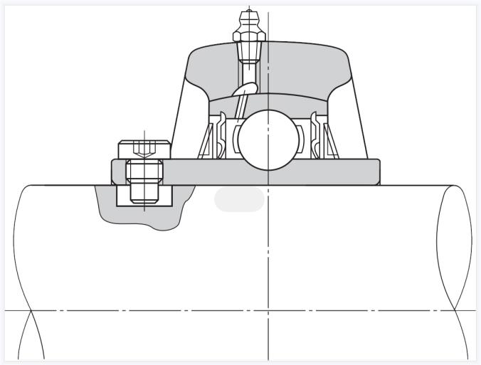 如果沒有自由端軸承,軸承將承受異常軸向載荷,可能導(dǎo)致軸承過(guò)早損壞,出于上述目的,需要使用如上圖所示的套筒式軸承單元,但通常采用如下圖所示的方法,在軸上切割鍵槽,以容納特殊的固定螺釘。