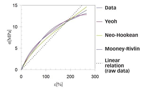 今天進行的許多工程計算都基于這樣的假設(shè),即材料的線性和彈性行為,力和位移線性地依賴于一個常數(shù),即剛度。橡膠材料通常表現(xiàn)為非線性,僅僅定義一個常數(shù)來將力與位移或應(yīng)力與應(yīng)變聯(lián)系起來是不夠的,相反,橡膠需要能夠處理多軸非線性的更復(fù)雜的本構(gòu)模型。
