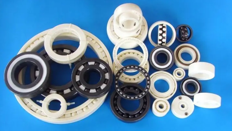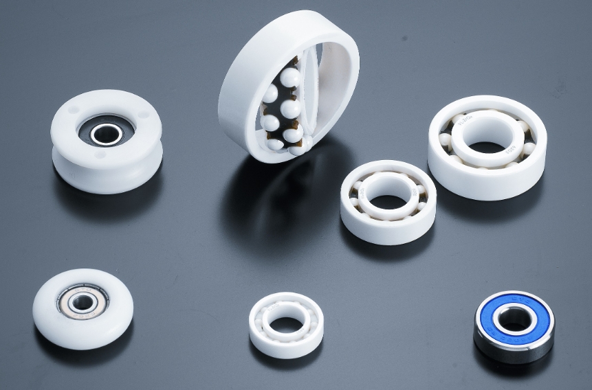 全陶瓷軸承顧名思義,軸承的一切都由陶瓷制成,包括軸承套圈和滾珠,當然,保持架一般不是陶瓷材質,由PEEK或PTFE樹脂制成,它們具有很強的耐酸堿性,因此適合在腐蝕性很強的環境中使用。氮化硅(Si3N4)軸承在沒有保持架的情況下使用時,可以耐受高達800攝氏度的高溫。陶瓷軸承的重量僅為相同尺寸金屬軸承重量的45%,因此轉速更高,也更靜音。