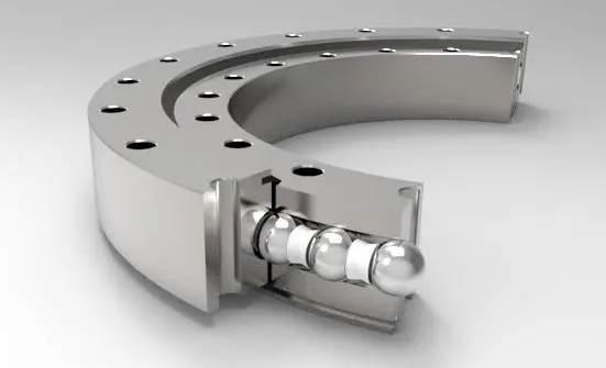 三、單列交叉滾子回轉(zhuǎn)支承(11系列)軸承。單列交叉滾子回轉(zhuǎn)支承軸承由兩個(gè)座圈組成,結(jié)構(gòu)緊湊,重量輕,制造精度高,裝配間隙小,對(duì)安裝精度要求高,滾子以1:1交叉排列,可以同時(shí)承載軸承的軸向力、傾覆力矩和較大的徑向力,廣泛應(yīng)用于起重運(yùn)輸、工程機(jī)械等。