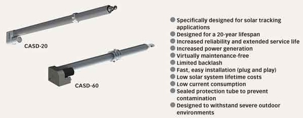 CASD線性執行器可提高效率,降低電流消耗、提高定位精度和限制反沖,作為一個完整的單元,致動器不僅易于安裝在任何太陽能應用中,而且還大大縮短了設計和開發時間,同時節省了運行成本。