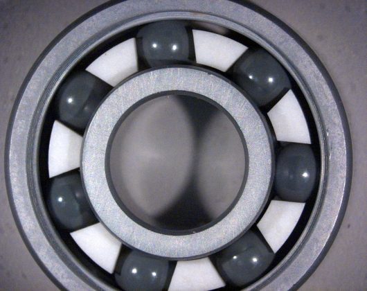 最常見的軸承密封材料是丁腈橡膠,這種類型的密封件通常是直接粘合到高氮鋼制套圈的插槽中,最高工作溫度為120°C,這種類型的密封與內圈接觸,密封效果比金屬防塵蓋更好,然而,由于與內圈接觸,會導致扭矩增加并限制軸承的最高轉速。