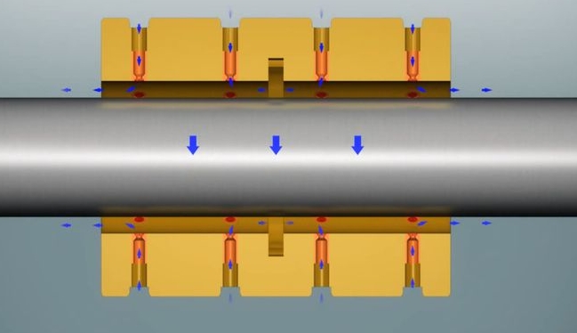 空氣箔片軸承是一種氣體軸承,其設(shè)計(jì)利用氣膜中的壓力將運(yùn)動(dòng)表面和靜止表面分開(kāi),從而實(shí)現(xiàn)低摩擦、高速旋轉(zhuǎn),氣體軸承運(yùn)行所需的壓力可以從外部提供,也可以通過(guò)軸承本身的旋轉(zhuǎn)在內(nèi)部產(chǎn)生,空氣箔片軸承使用后一種方法,因此,它們是一種動(dòng)態(tài)氣體軸承。