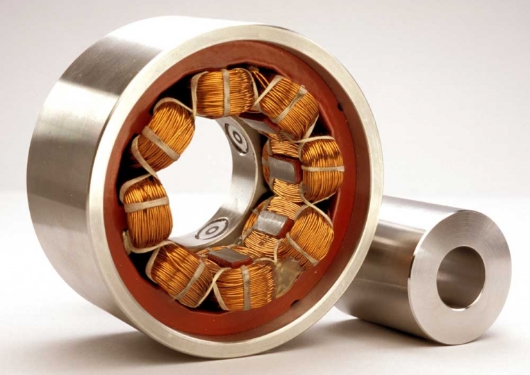 磁性軸承使用磁懸浮來(lái)支撐旋轉(zhuǎn)軸,大多數(shù)磁性軸承設(shè)計(jì)使用圍繞軸承殼和包含鐵磁性材料的軸布置的磁體,磁鐵吸引軸,當(dāng)作用在軸上的力平衡時(shí),它被保持遠(yuǎn)離外殼,允許低摩擦旋轉(zhuǎn)。這種設(shè)計(jì)使用由電子控制系統(tǒng)供電的電磁鐵,該系統(tǒng)可以調(diào)整電磁鐵產(chǎn)生的力,外殼中的傳感器持續(xù)監(jiān)測(cè)軸的位置,控制系統(tǒng)改變輸送到磁體的功率,以將軸保持在最佳位置。