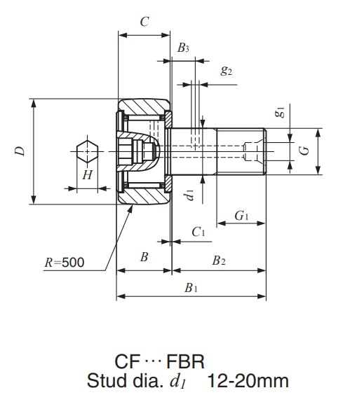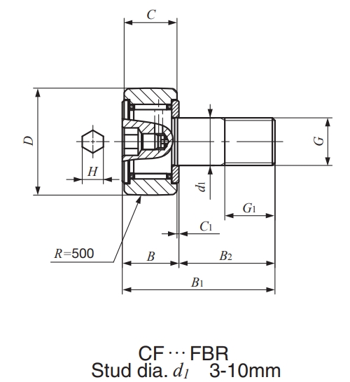 IKO CF8FBUUR軸承尺寸、參數與圖紙