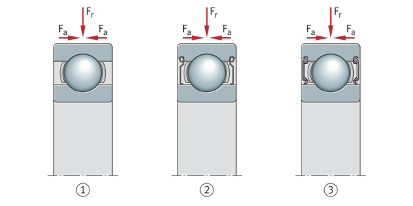 由于軸承套圈中的滾道槽很深,滾道槽和滾珠之間的接觸很窄,單列深溝球軸承可以承受兩個方向的軸向載荷。例如,軸向承載能力取決于軸承尺寸、內部結構和軸承游隙。然而,如果軸向負載過高,則會增加運行噪音,并大大縮短軸承的使用壽命。
