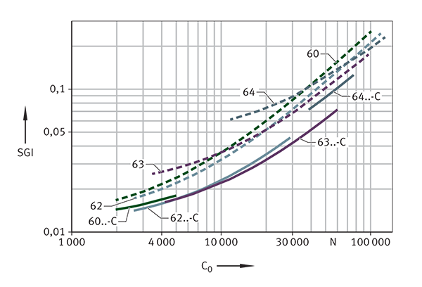為了在接觸之間不發生滑動,深溝球軸承必須持續承受足夠高的載荷。根據經驗,為此需要P>C0r/100量級的最小徑向載荷。然而,在大多數情況下,由于支撐部件的重量和外力,徑向載荷高于所需的最小載荷。
