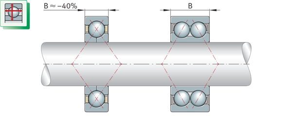 四點接觸軸承和雙列角接觸球軸承的比較: B=軸承寬度 | ![]() |
