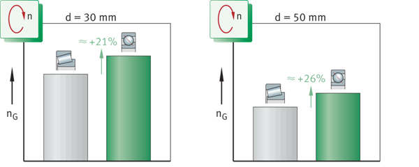 允許在具有相同承載能力的軸承之間進行直接比較。每個圖表中都給出了上限值。