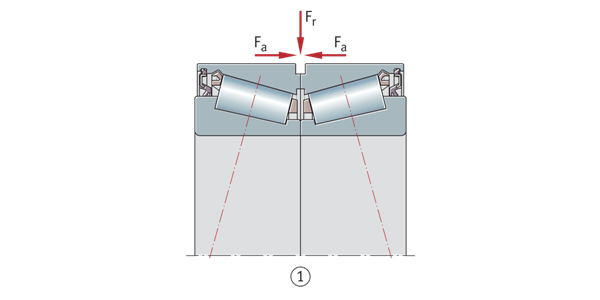 在具有兩個單獨軸承的軸承布置中,必須考慮產(chǎn)生的軸向力Fa