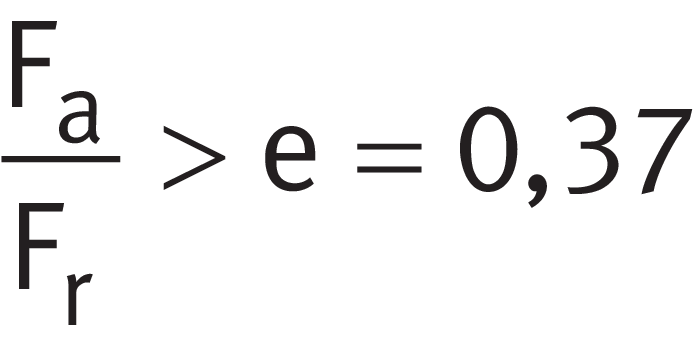 計算軸承A的軸向力Fa和徑向力Fr之間的比率,并根據(jù)乘積表將其與極限值e進行比較(在這種情況下,e=0,37)。