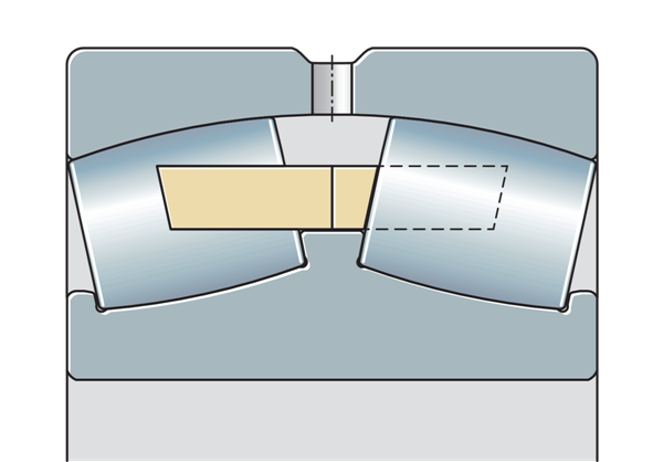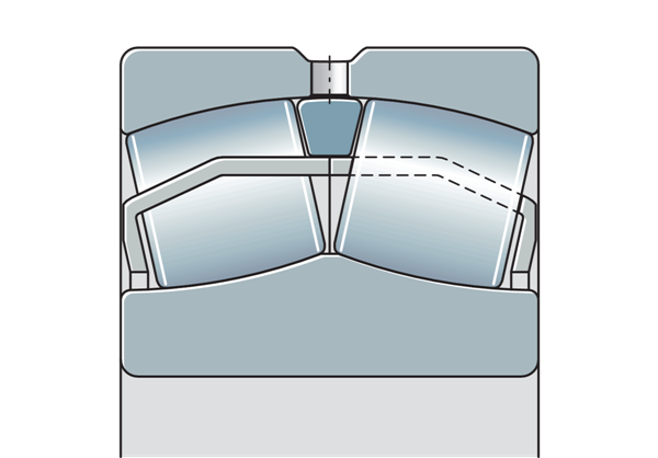 兩件式黃銅保持架 外圈導向,內圈帶兩個側向擋肋和一個中心擋肋 | ![]() |