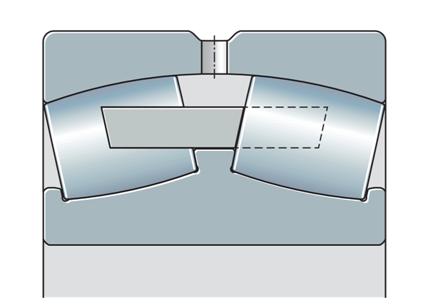 由于外圈有凹形滾動元件滾道,調心滾子軸承能夠進行角度調節,它們允許外圈和內圈之間在一定范圍內偏斜,而不會對軸承造成損壞,因此可以補償錯位、軸偏轉和殼體變形。