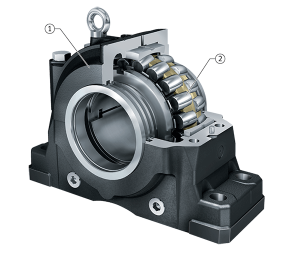 由于應用領域眾多,具有圓柱孔和錐形孔的軸承可使用廣泛的軸承箱。其中包括剖分式和一體式軸承座、拉緊式殼體、法蘭殼體以及用于特定工業和鐵路應用的殼體。