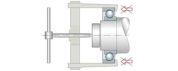 實例表明,在設(shè)計相鄰零件時必須考慮拆卸工具的放置。如果內(nèi)圈緊密配合,則必須能夠接近其端面。可以通過例如限制軸肩直徑或在軸肩中提供槽來實現(xiàn),間隔環(huán)或迷宮式環(huán)的設(shè)計必須確保它們不會干擾拆卸。