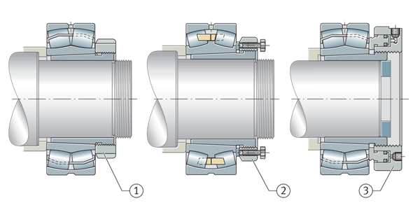 為了使退卸套不被壓入偏斜,首先將螺母擰緊到壓力環(huán)與退卸套完全接觸的程度。均勻分布在圓周上的壓力螺釘然后以橫向順序均勻擰緊,直到徑向內(nèi)部間隙達到所需的減小。由于退卸套的錐形是自鎖的,因此可以拆下螺母;退卸套的位置由軸螺母固定。
