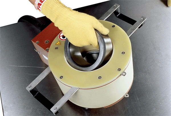 如果使用固定線圈,則每個尺寸的套圈都需要一個單獨的裝置。加熱速度很快,在拆卸過程中很少有熱量進入軸,而且之前緊密配合的內(nèi)圈可以很容易地從軸上松開。
