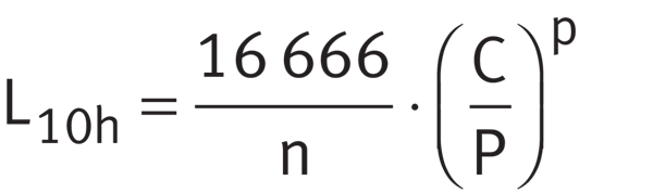 以百萬轉(L10)為單位的基本額定壽命計算以及以運行小時(L10h)為單位的基本額定壽命計算如下: