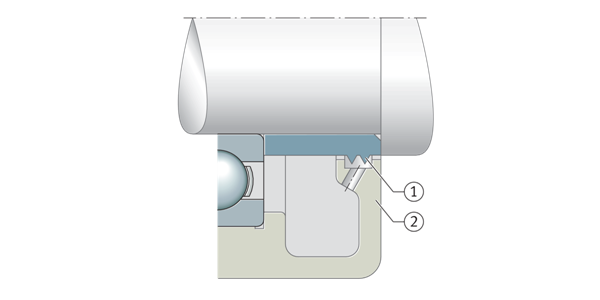 迷宮式密封集成在軸承中 ①帶集成保護迷宮的軸承 ②帶橡膠密封罩的軸承作為保護迷宮 | ![]() |