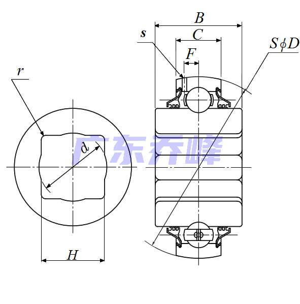 | 重型盤式軸承 - 方孔,球面外圈,1系列 - 尺寸 | |
