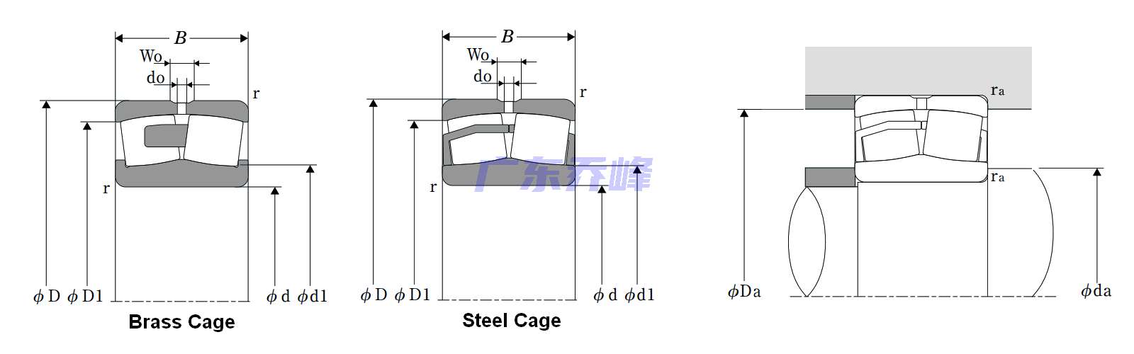 | 調心滾子軸承 - 圓柱孔&注油槽,213系列 - 尺寸 | |