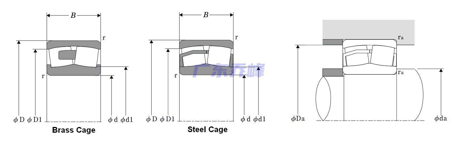 一體式機加工黃銅保持架,抗沖擊性好,剛度大(B型:每排一個機加工黃銅保持架)
