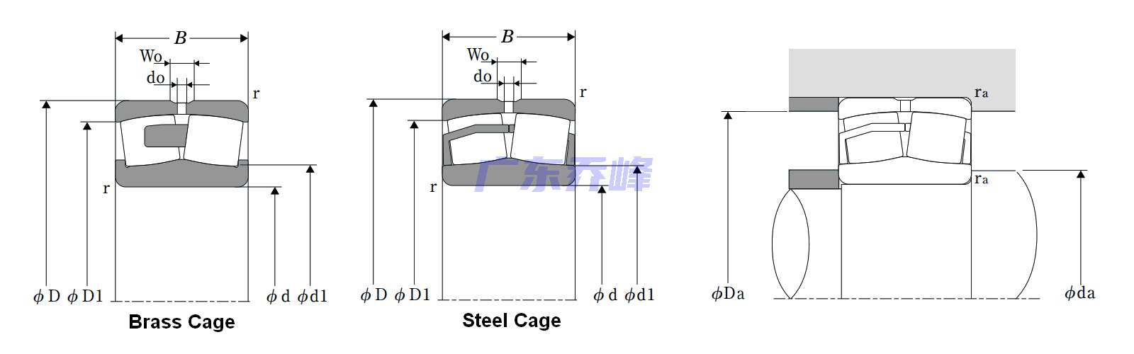 | 調心滾子軸承 - 圓柱孔&注油槽,230系列 - 尺寸 | |