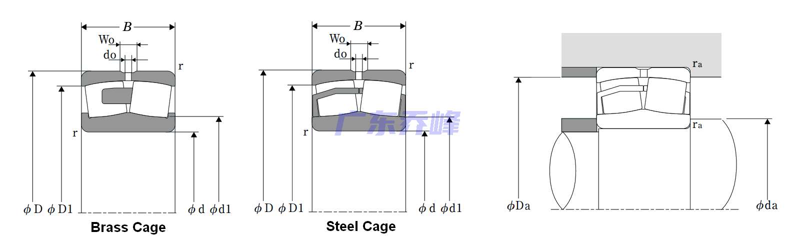 | 調心滾子軸承 - 圓柱孔&注油槽,240系列 - 尺寸 | |