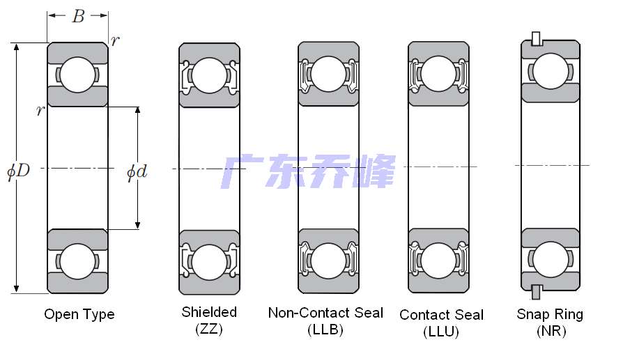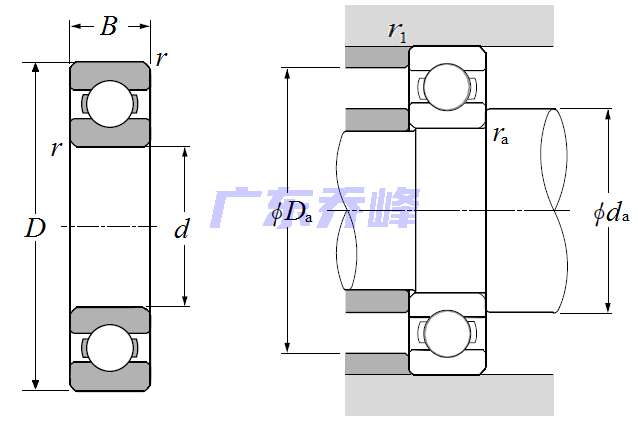 | 單列深溝球軸承 - 開式 - 尺寸 | |