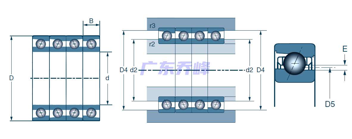 | 四列角接觸球軸承,機(jī)床用,Q21系列 - 尺寸 | |