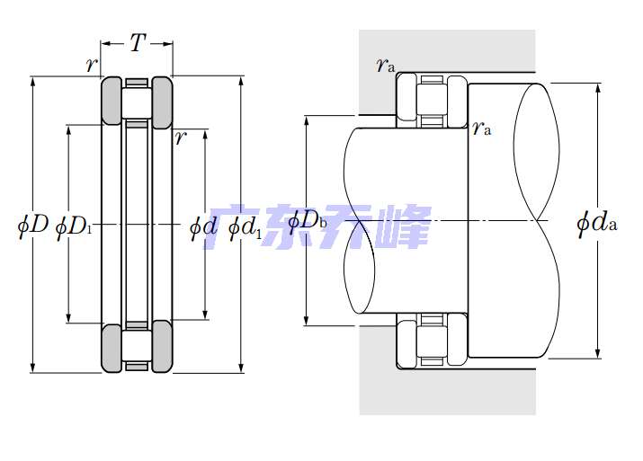 | 推力圓柱滾子軸承 - 812,813系列- 尺寸 | |