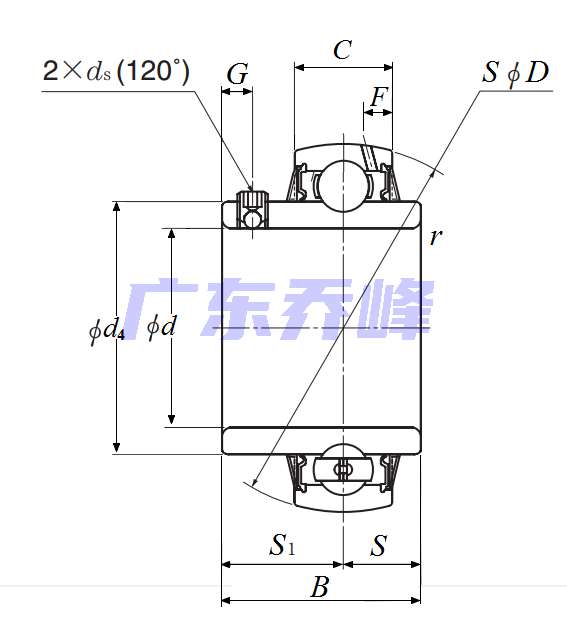 | 超一流帶緊定螺釘的外球面軸承,寬外圈 - 球面外圈 - 尺寸 | |
