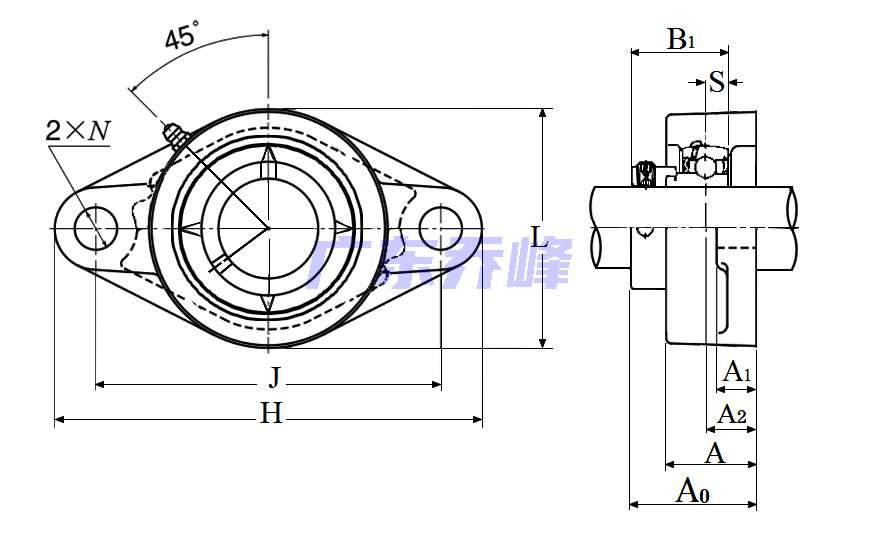 | 類型 | 雙螺栓菱形法蘭式軸承座單元 |