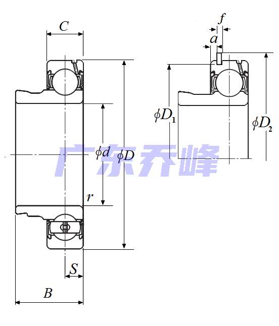 | 外球面軸承 - 圓柱內徑,帶止動環 - 尺寸 | |
