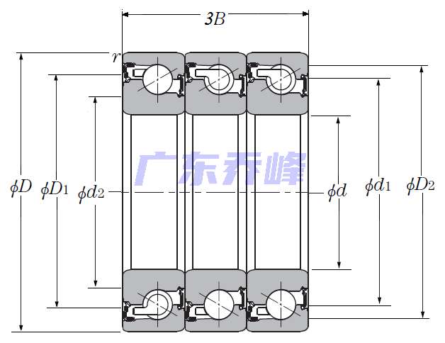 | 滾珠絲杠用三列推力角接觸球軸承 - DTT配對,雙面密封,三排承受軸向載荷 - 尺寸 | |