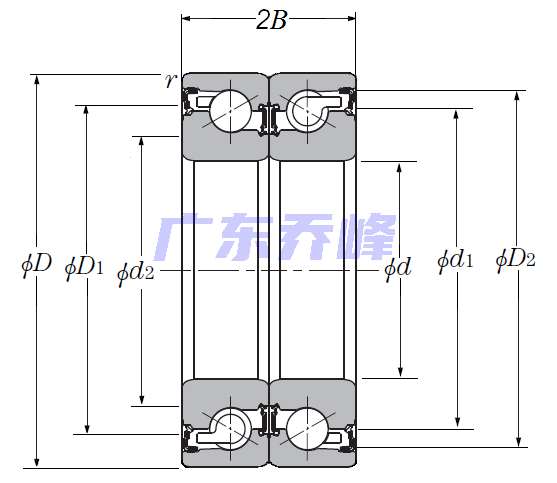 | 滾珠絲杠用雙角接觸推力球軸承 - 背對背配對,雙面密封,一排承受軸向載荷 - 尺寸 | |