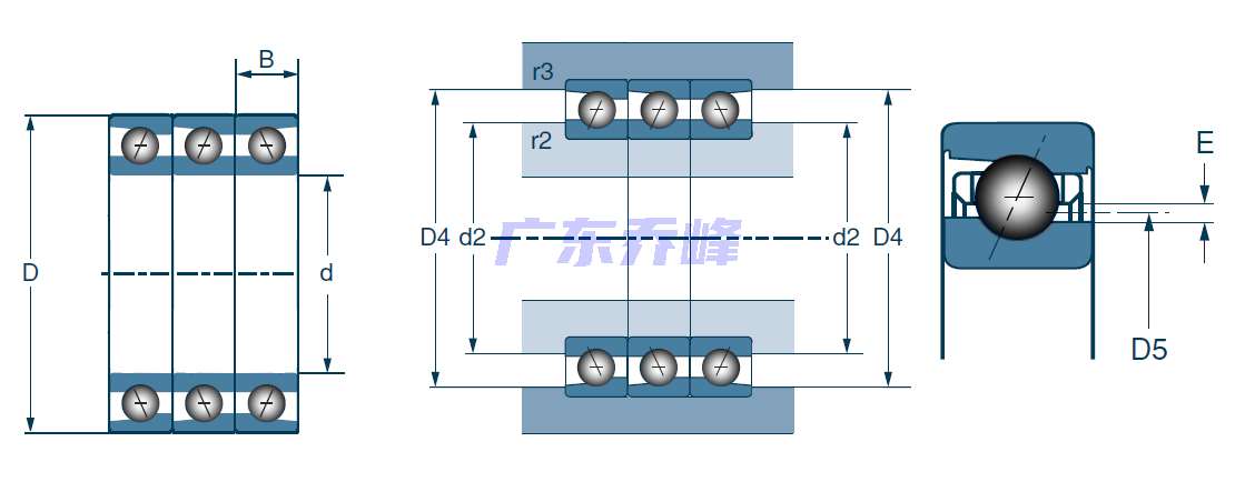 | Triple Row Hybrid Angular Contact Ball Bearing,機床用,Q16系列 - 尺寸 | |
