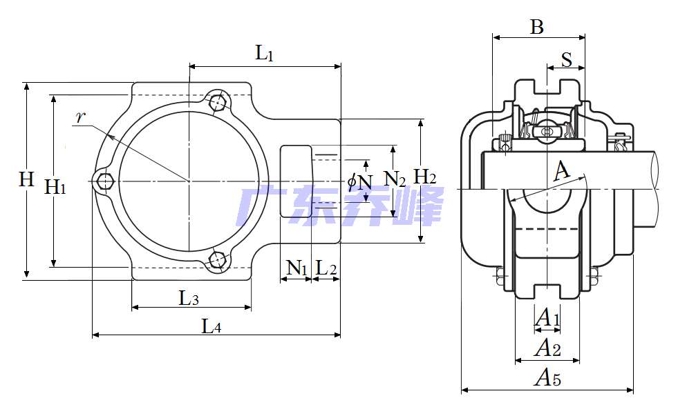 | 滑塊式軸承座,鑄造外殼,帶緊定螺釘,鑄造防塵蓋,封閉端蓋,UCT型 - 尺寸 | |