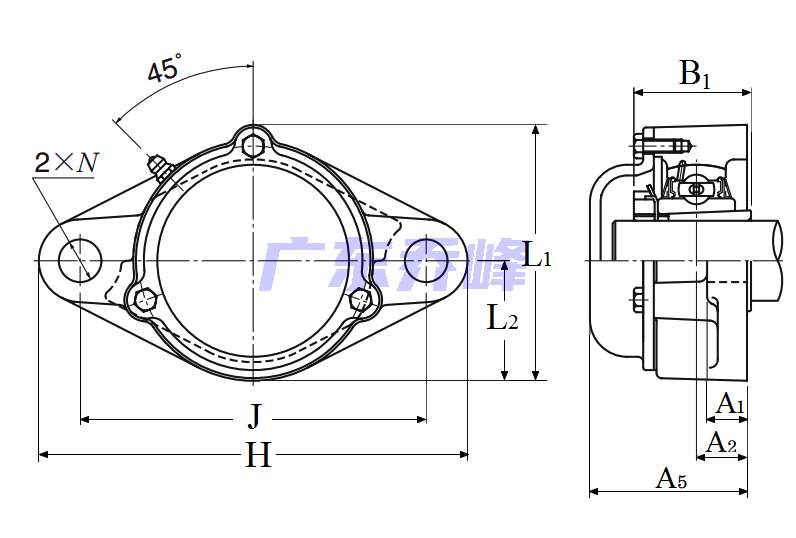 | 類型 | 雙螺栓菱形法蘭式軸承座單元 |