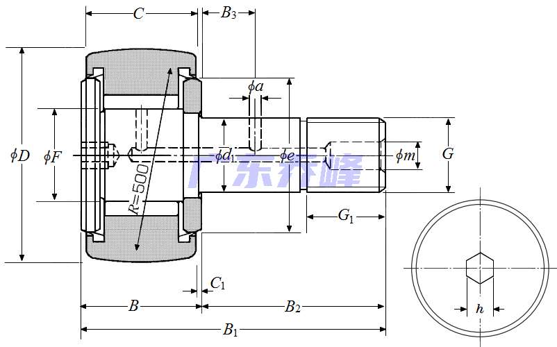 | 凸輪從動螺柱式滾輪軸承 - 球面外圈,CRV..LLH型 - 尺寸 | |