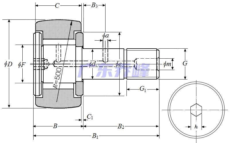 | 凸輪從動(dòng)螺柱式滾輪軸承 - 球面外圈,CRV..H型 - 尺寸 | |
