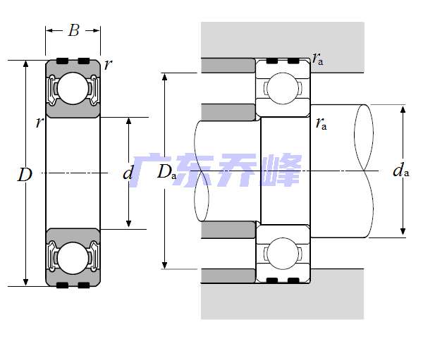 | 膨脹補償軸承 - 雙面密封(非接觸式橡膠密封) - 尺寸 | |