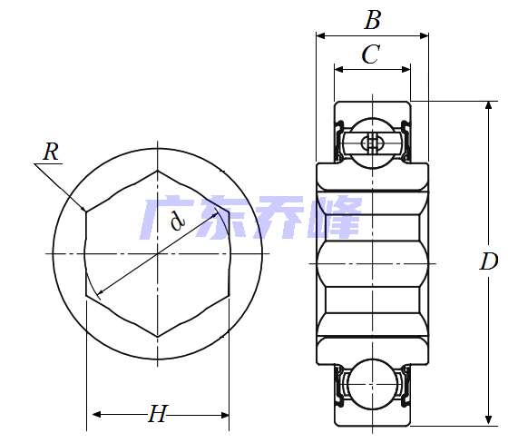 | 帶緊定襯套的軸承 - HP型,六角孔,圓柱內徑 - 尺寸 | |